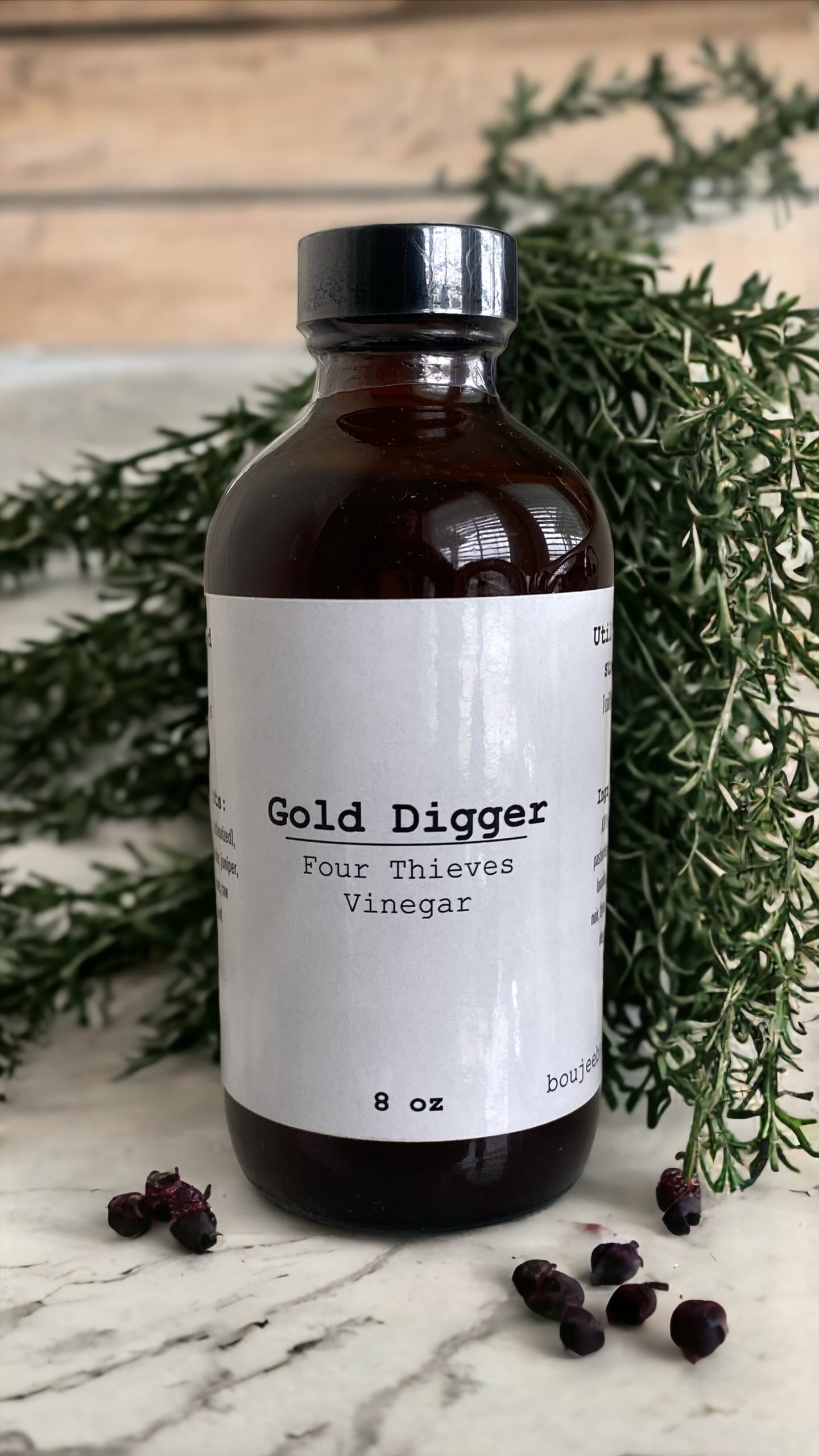 . Ingredients: Organic ACV, unpasteurized and raw, sage, rosemary, lavender, juniper, black peppercorn, thyme, raw garlic, and of course plant terpenes. Is it a salad dressing or is it folklore at it’s finest?