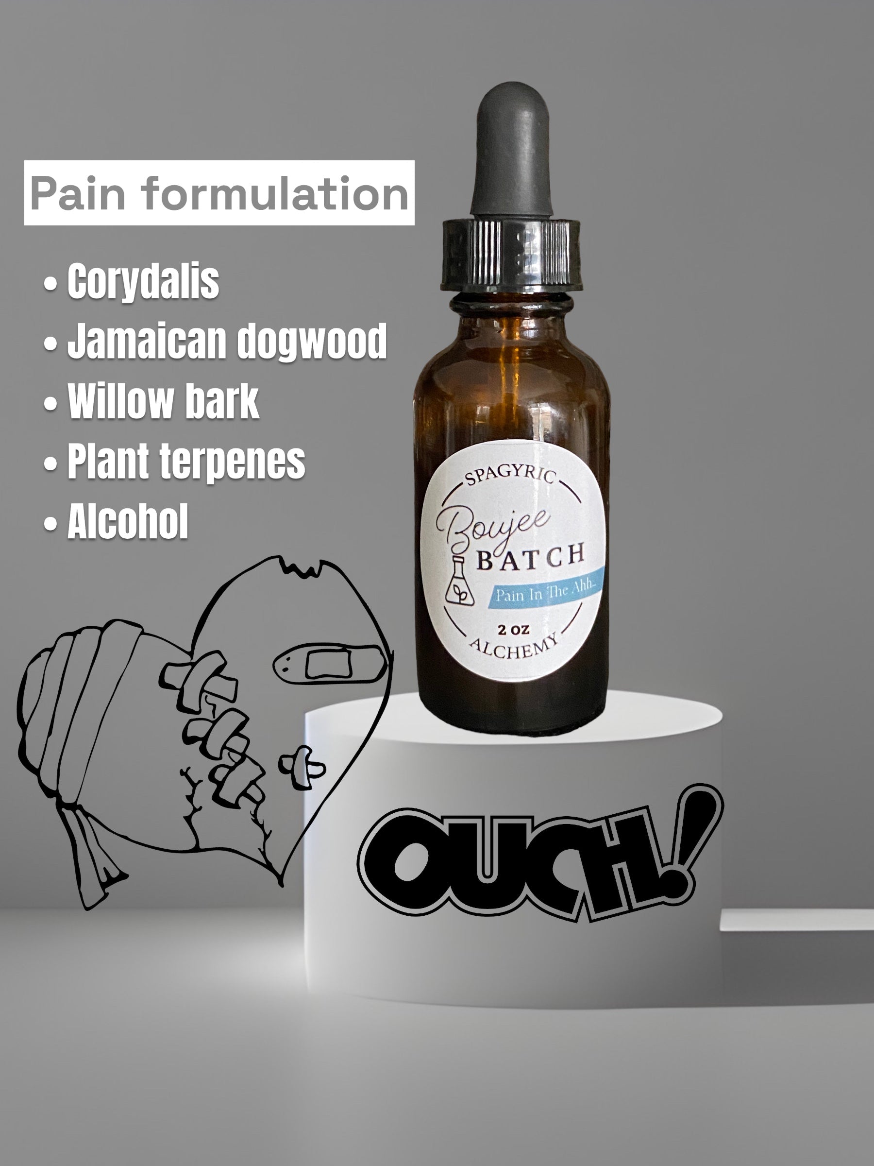 Corydalis, Jamaican dogwood, Willow bark, plant terpenes, alcohol